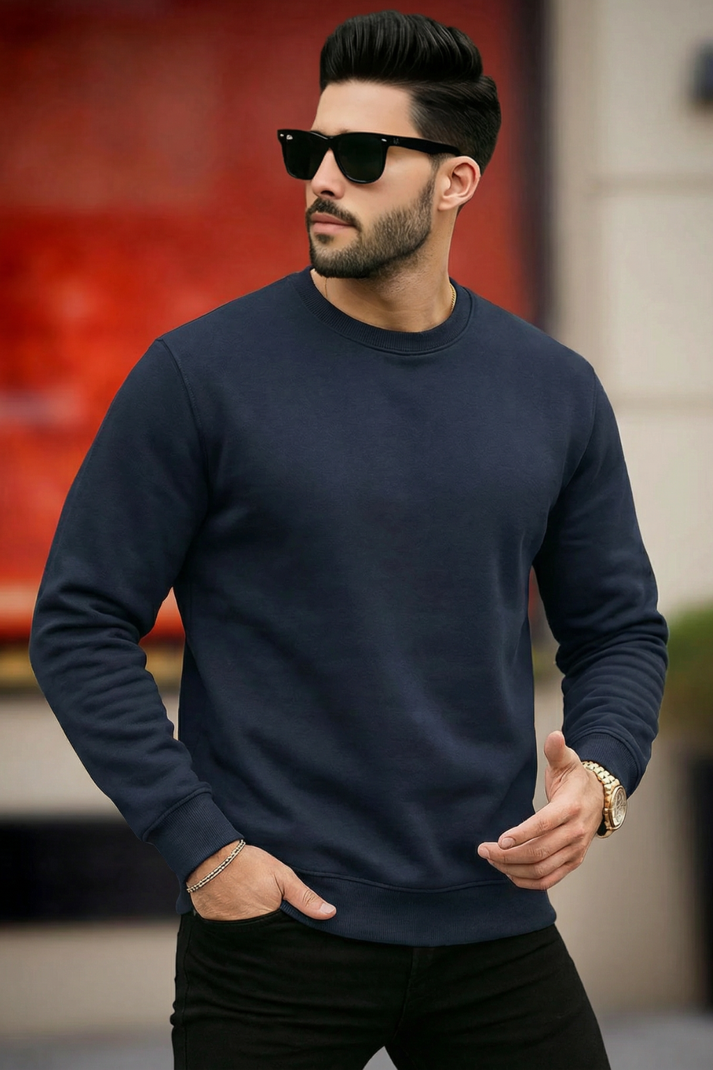 Keep it simple and stylish with this classic unisex sweatshirt, crafted from a heavyweight 300 GSM cotton blend that provides excellent warmth without compromising on comfort. The fabric feels soft on the skin while offering durability for regular wear.